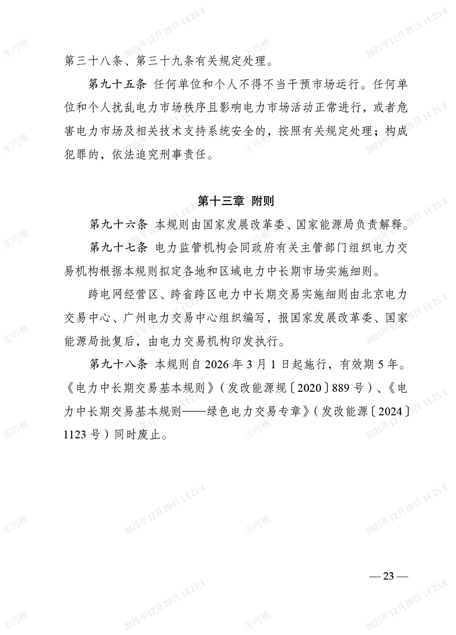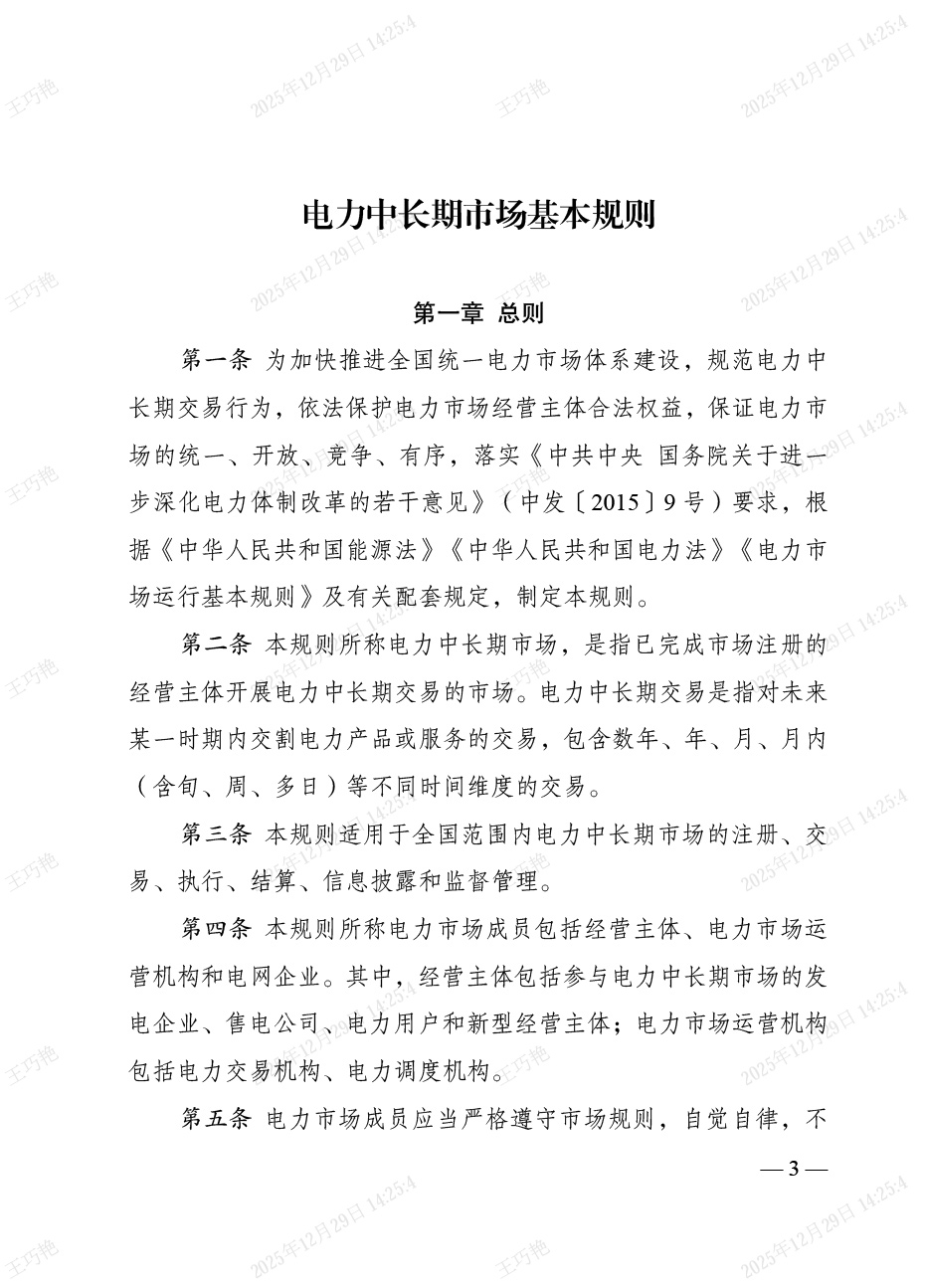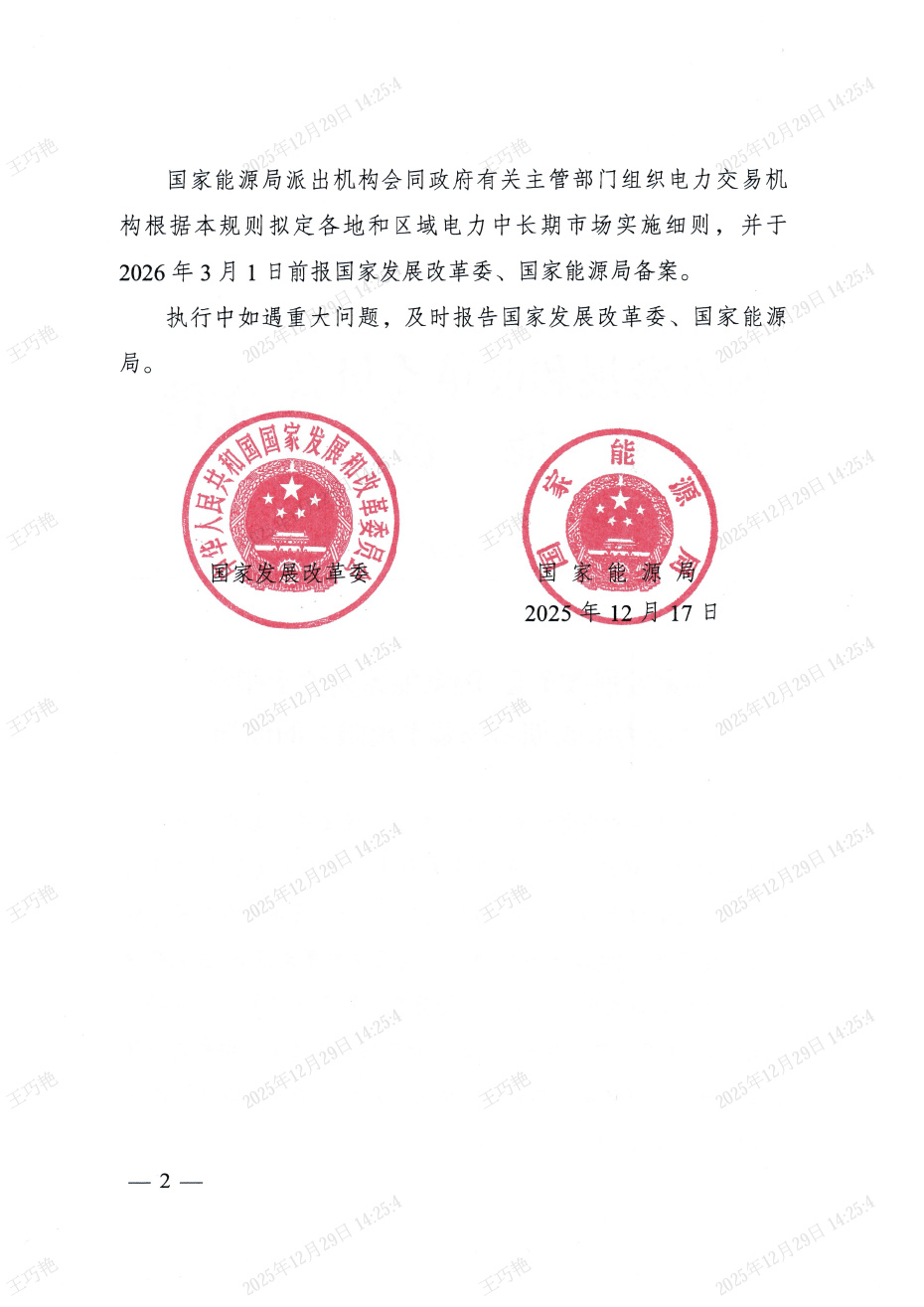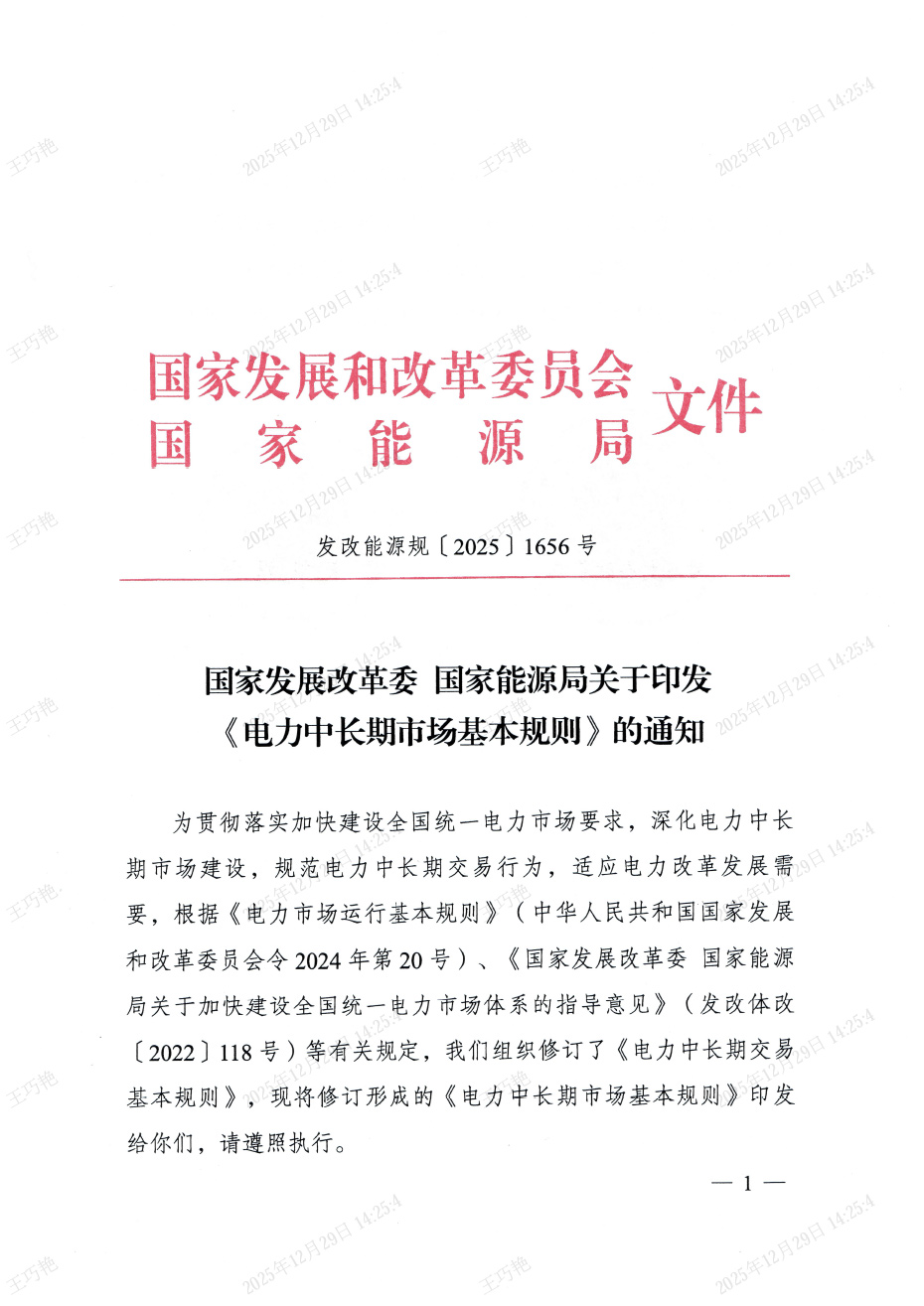 国家发展改革委国家能源局关于印发《电力中长期市场基本规则》的通知